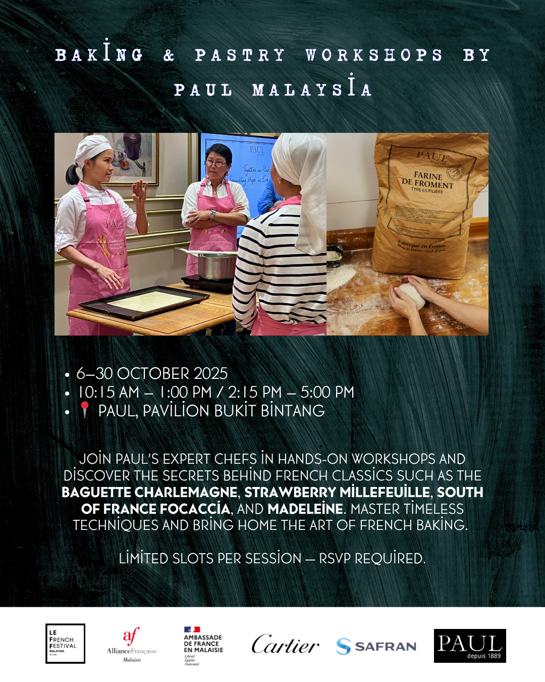 Bakery and pastry workshops, exclusive gastronomy-themed film screenings, and special menus from French